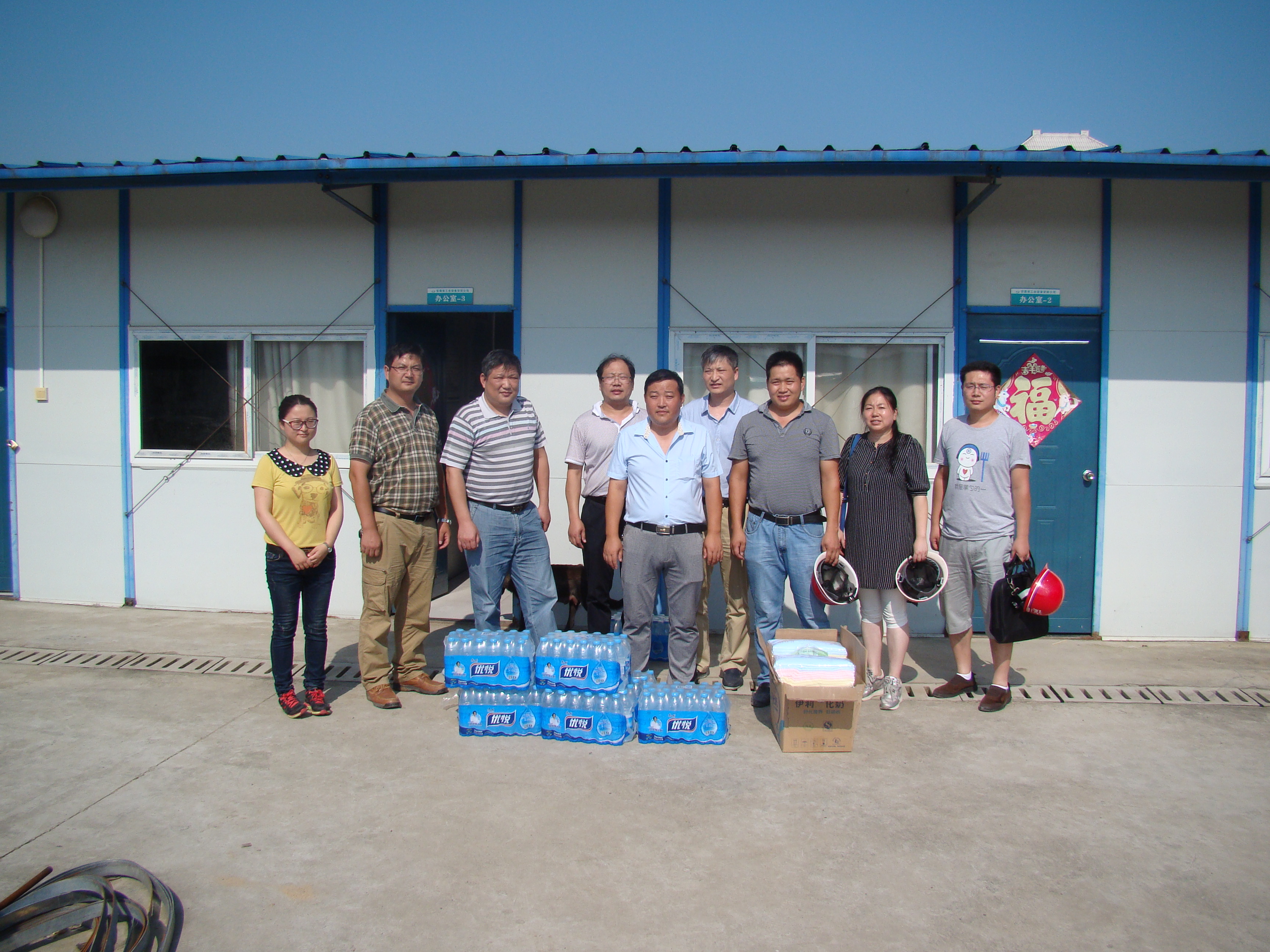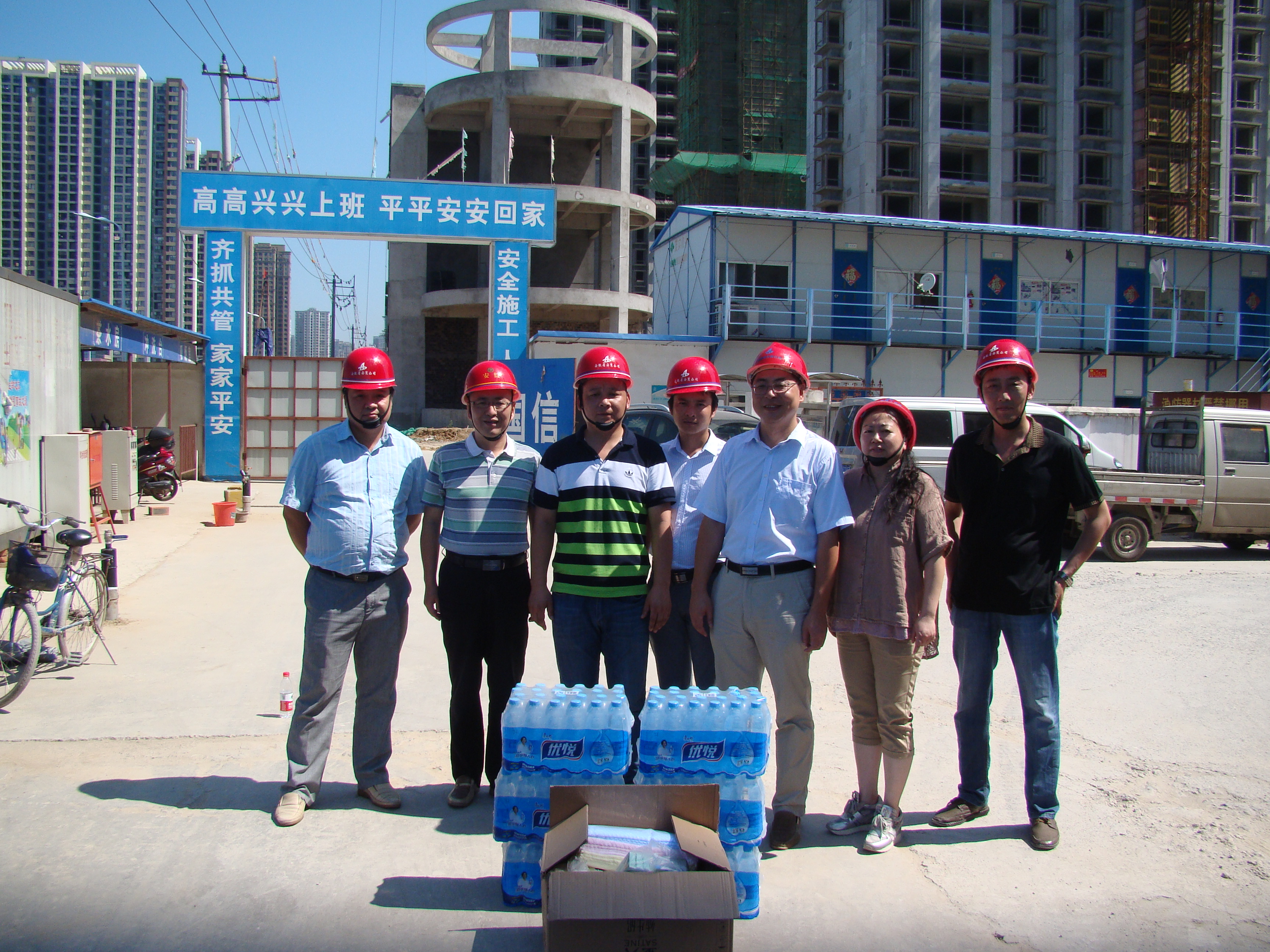 每到一個(gè)項(xiàng)目,公司領(lǐng)導(dǎo)都對項(xiàng)目部施工情況進(jìn)行詳細(xì)了解,仔細(xì)詢問了現(xiàn)場防暑降溫工作的落實(shí)情況,對炎熱天氣下仍在一線緊張工作的員工表示親切的問候,并把綠豆、白糖、毛巾、礦泉水、風(fēng)油精、人丹、十滴水等防暑降溫用品親自送到他們的手中,叮囑大家一定要做好防暑降溫工作,項(xiàng)目部一定要合理安排好作息時(shí)間,在施工現(xiàn)場多配備防暑降溫飲品及藥品,搞好食堂衛(wèi)生,做好后勤保障等工作,采取各種有效措施,確保員工的身體健康和施工安全。