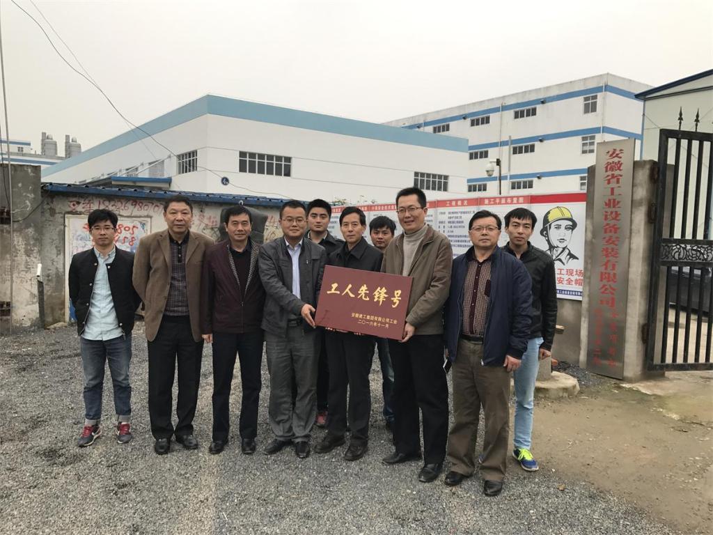 10月31日,以集團(tuán)公司工會(huì)主席徐曉光為組長(zhǎng),安徽二建工會(huì)主席李林、安徽路港工會(huì)副主席殷陽(yáng)明為組員,一行3人檢查組,蒞臨安徽安裝公司皖北藥業(yè)二期項(xiàng)目檢查、驗(yàn)收、考評(píng),創(chuàng)建“工人先鋒號(hào)”,并進(jìn)行了現(xiàn)場(chǎng)授牌。