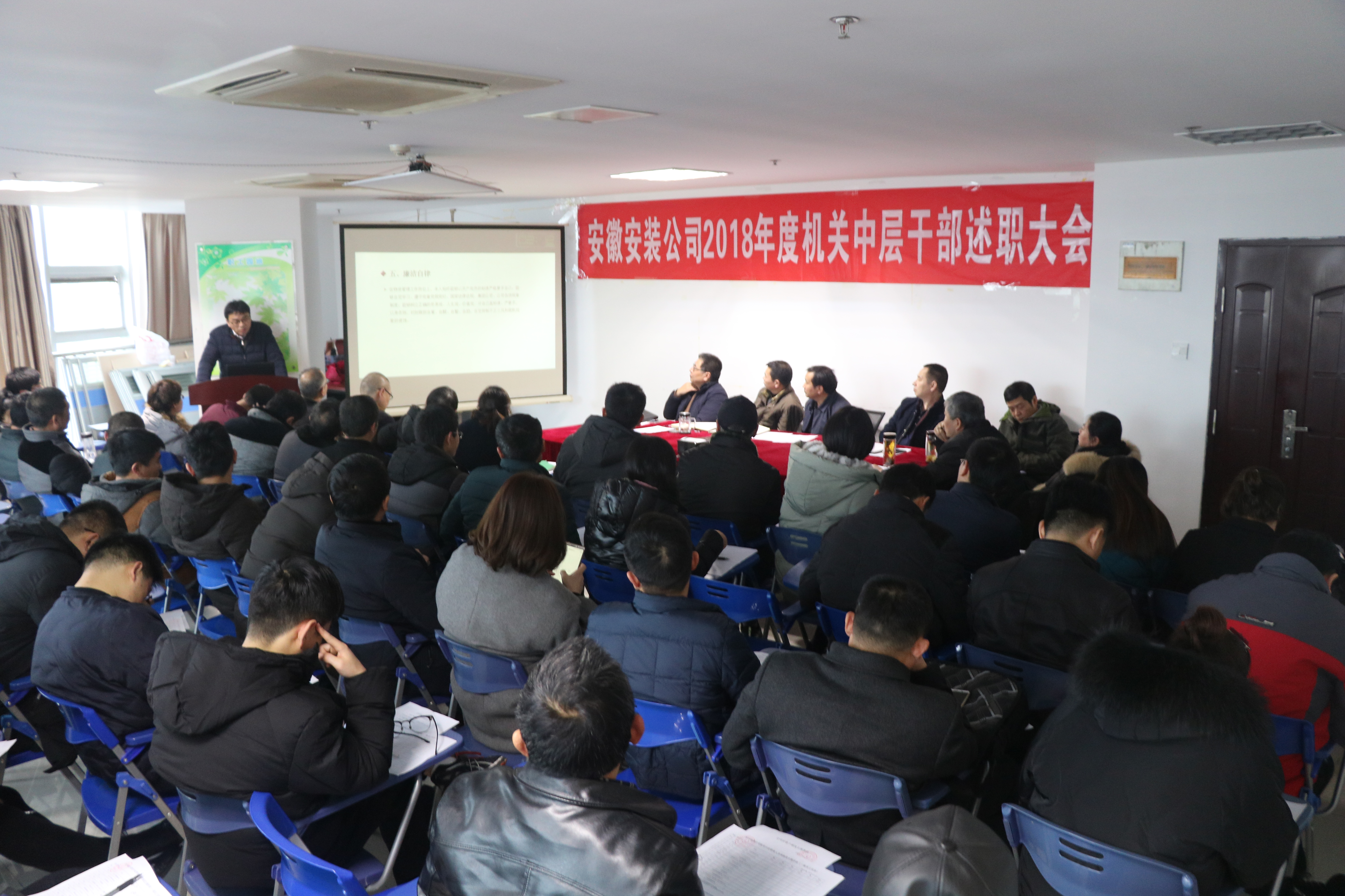 1月11日下午,安徽安裝公司召開2018年度機(jī)關(guān)中層干部述職述廉大會(huì)。公司領(lǐng)導(dǎo)班子成員、機(jī)關(guān)中層干部、分公司黨政主要領(lǐng)導(dǎo)、機(jī)關(guān)全體員工共80余人參加了此次會(huì)議。大會(huì)由公司黨委書記、董事長胡六中主持。