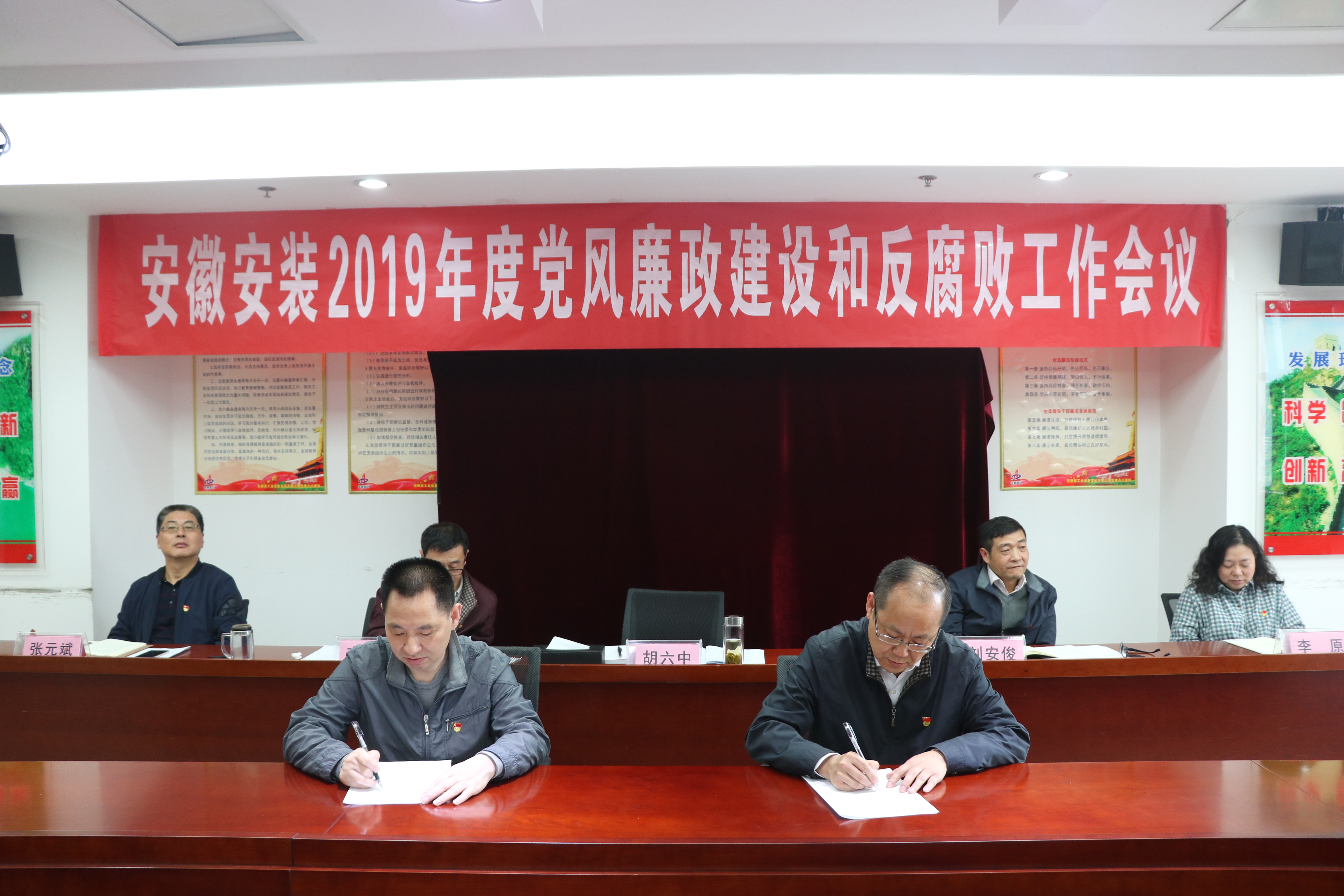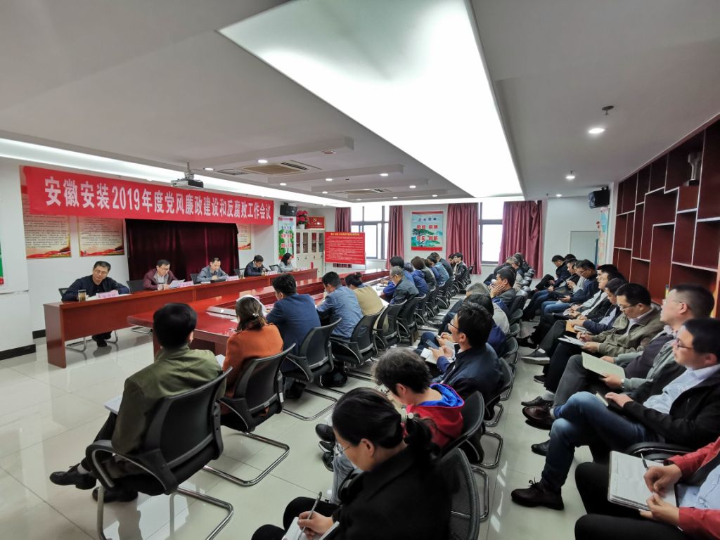 4月29日下午,安徽安裝公司組織召開2019年度黨風廉政建設和反腐敗工作會議,公司領導班子成員、公司中層管理人員及黨群部門全體人員近60人參加會議。會議由公司紀委書記、工會主席李寬旭主持。