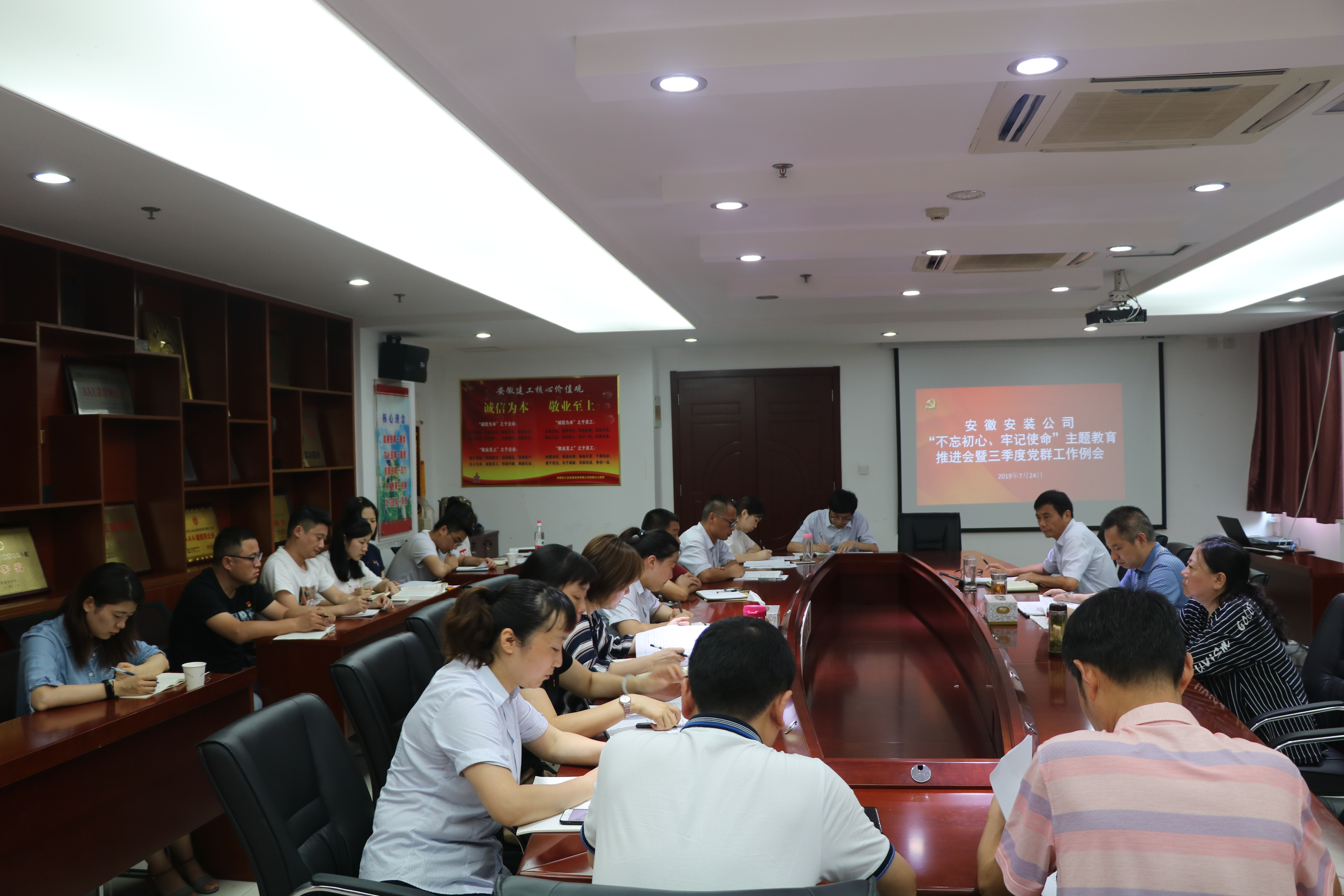7月24日下午,安徽安裝公司黨委召開“不忘初心、牢記使命”主題教育工作推進會暨三季度黨群工作會議。公司有關(guān)領(lǐng)導(dǎo)、黨群部門人員、所屬各黨支部書記、工會及團支部主要負責(zé)同志參加會議,會議由公司黨委委員、紀(jì)委書記、工會主席李寬旭主持。