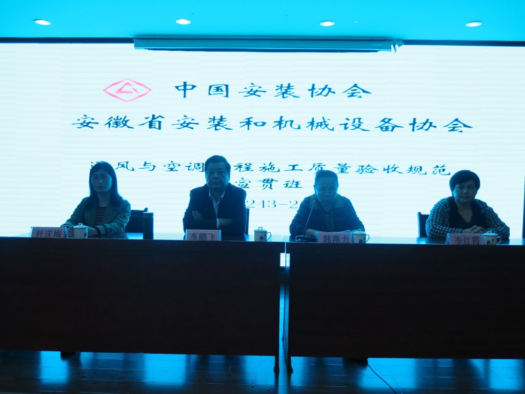 2017年11月10日,由中國安裝協(xié)會主辦,安徽省安裝和機(jī)械設(shè)備協(xié)會承辦的《通風(fēng)與空調(diào)工程施工質(zhì)量驗(yàn)收規(guī)范》(GB50243-2016)宣貫班在安徽合肥成功舉辦。這是中國安裝協(xié)會與安徽省安裝和機(jī)械設(shè)備協(xié)會首次合作開展培訓(xùn)。來自北京、山西、江蘇和我會會員單位負(fù)責(zé)人、技術(shù)負(fù)責(zé)人、工程師等相關(guān)人員200多人參會。安徽省安裝和機(jī)械設(shè)備協(xié)會副會長李鵬飛作了開班動員,中國安裝協(xié)會培訓(xùn)班主任韓燕力提出基本要求。
