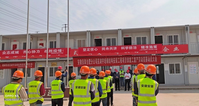 為確保年度各項目目標任務順利完成,貫徹落實集團和安裝公司兩級職代會及疫情防控、復工復產(chǎn)工作推進會精神,3月21日上午,安徽安裝召開蕪湖宇培裝配生產(chǎn)基地項目“大干90天”勞動競賽動員會。公司黨委書記、董事長胡六中,紀委書記、工會主席李寬旭,合肥分公司領導班子成員、項目管理人員和施工班組參加了競賽動員會。