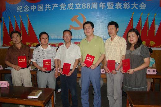 為迎接中國共產(chǎn)黨成立88周年,公司黨委于6月30日下午召開了“紀念中國共產(chǎn)黨成立88周年暨表彰大會”。合肥地區(qū)在崗黨員、非黨員中層干部、入黨積極分子,外地分公司經(jīng)理、書記以及受表彰的先進個人參加了大會。大會由黨委書記戴樹明同志主持。