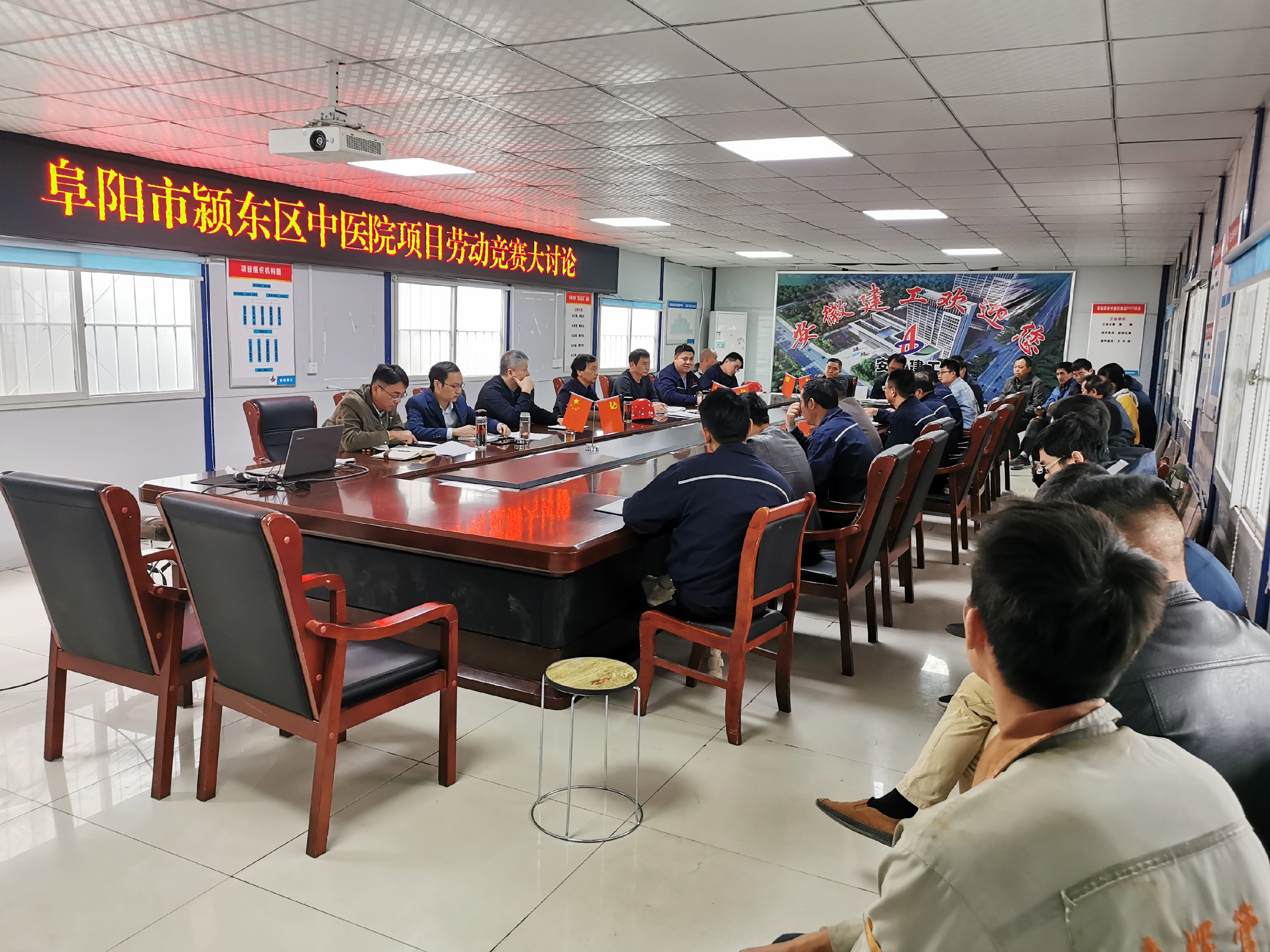 為認(rèn)真貫徹集團(tuán)公司“戰(zhàn)疫情、搶工期、保目標(biāo)、促超產(chǎn)”勞動(dòng)競賽活動(dòng)精神,11月5日上午,公司副總經(jīng)理高飛,紀(jì)委書記、工會(huì)主席李寬旭,總工程師吳繼成一行在阜陽潁東區(qū)中醫(yī)院建設(shè)PPP項(xiàng)目部會(huì)議室,組織開展“戰(zhàn)疫情、搶工期、保目標(biāo)、促超產(chǎn)”勞動(dòng)競賽大討論,公司相關(guān)部門負(fù)責(zé)人、項(xiàng)目部全體人員30余人參加了會(huì)議,會(huì)議由李寬旭主持。