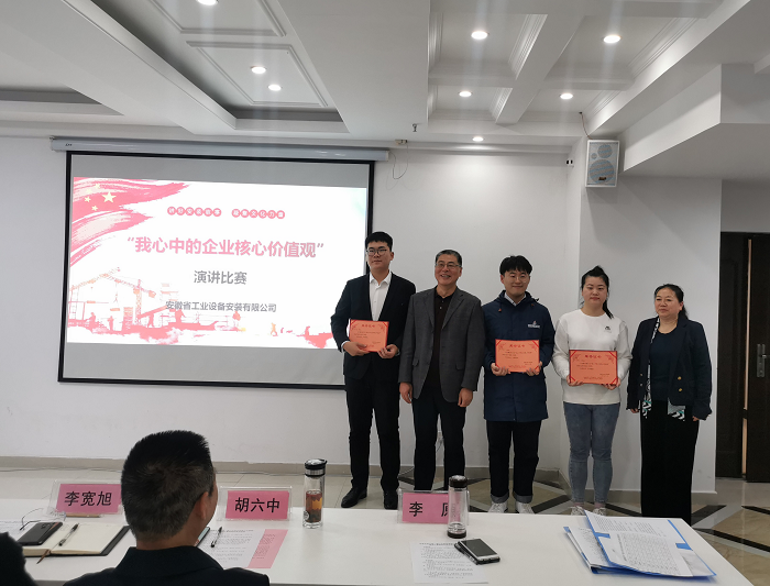 10月30日下午,安徽安裝公司在公司15樓職工之家舉辦了“我心中的企業(yè)核心價(jià)值觀”演講比賽。公司黨委書(shū)記、董事長(zhǎng)胡六中,紀(jì)委書(shū)記、工會(huì)主席李寬旭,副總經(jīng)理李原、總會(huì)計(jì)師張?jiān)蟪鱿荣惉F(xiàn)場(chǎng)。