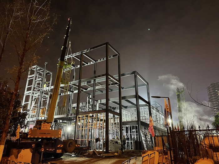 自11月初接到項(xiàng)目任務(wù)以來(lái),面對(duì)一個(gè)月完成三層結(jié)構(gòu)方艙醫(yī)院主體機(jī)構(gòu)、內(nèi)部安裝、室外裝飾的極限工期,安徽安裝公司高度重視、精心組織、科學(xué)安排、迎難而上,全力以赴加快工程建設(shè),期間,公司領(lǐng)導(dǎo)多次前往項(xiàng)目現(xiàn)場(chǎng)幫助協(xié)調(diào)解決工程施工中的難點(diǎn)、困難,為項(xiàng)目人員鼓勁加油;公司相關(guān)部門(mén)負(fù)責(zé)人駐扎項(xiàng)目一線,指導(dǎo)協(xié)調(diào)內(nèi)部流程、現(xiàn)場(chǎng)施工、外部對(duì)接、質(zhì)量安全等一應(yīng)事務(wù);分公司第一時(shí)間組織精干力量進(jìn)入項(xiàng)目現(xiàn)場(chǎng),梳理現(xiàn)場(chǎng)情況,核對(duì)圖紙清單,進(jìn)行施工準(zhǔn)備。從公司領(lǐng)導(dǎo)到項(xiàng)目一線,安徽安裝公司自上而下以高度的使命感和責(zé)任感,投入到緊張的工程建設(shè)中去。項(xiàng)目管理人員披星戴月,從早上到夜間駐守在項(xiàng)目一線,每日召開(kāi)工程會(huì)議,討論施工工作進(jìn)展,制定下一步工作計(jì)劃,安排交叉作業(yè)工序。為保障夜間施工安全,項(xiàng)目部安排兩名安全員輪流值守項(xiàng)目現(xiàn)場(chǎng),夜間在項(xiàng)目現(xiàn)場(chǎng)不斷巡查確保施工安全、高效開(kāi)展。