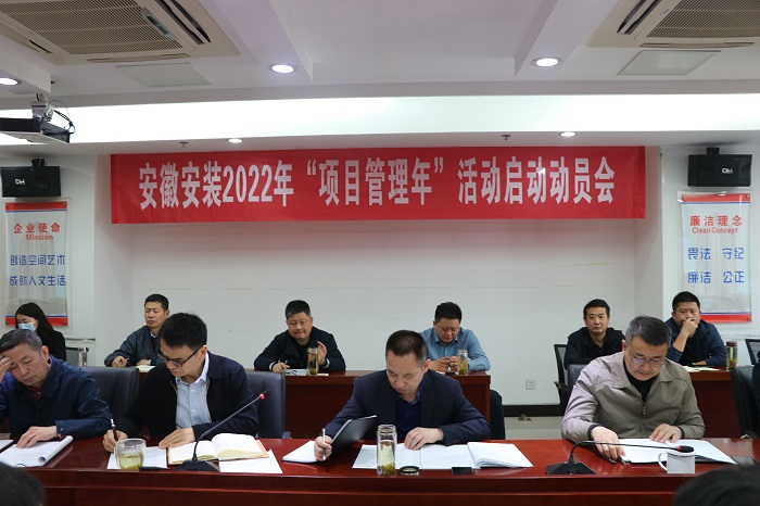 為持續(xù)抓好項(xiàng)目管理推進(jìn)工作落實(shí)機(jī)制,切實(shí)打好2022年度項(xiàng)目管理攻堅(jiān)戰(zhàn),4月6日,公司組織召開(kāi)2022年度“項(xiàng)目管理年”活動(dòng)啟動(dòng)動(dòng)員會(huì)。公司領(lǐng)導(dǎo)班子成員、機(jī)關(guān)各部門負(fù)責(zé)人、在肥分公司相關(guān)項(xiàng)目管理人員在公司大會(huì)議室參加會(huì)議,外地分公司以視頻形式參會(huì)。