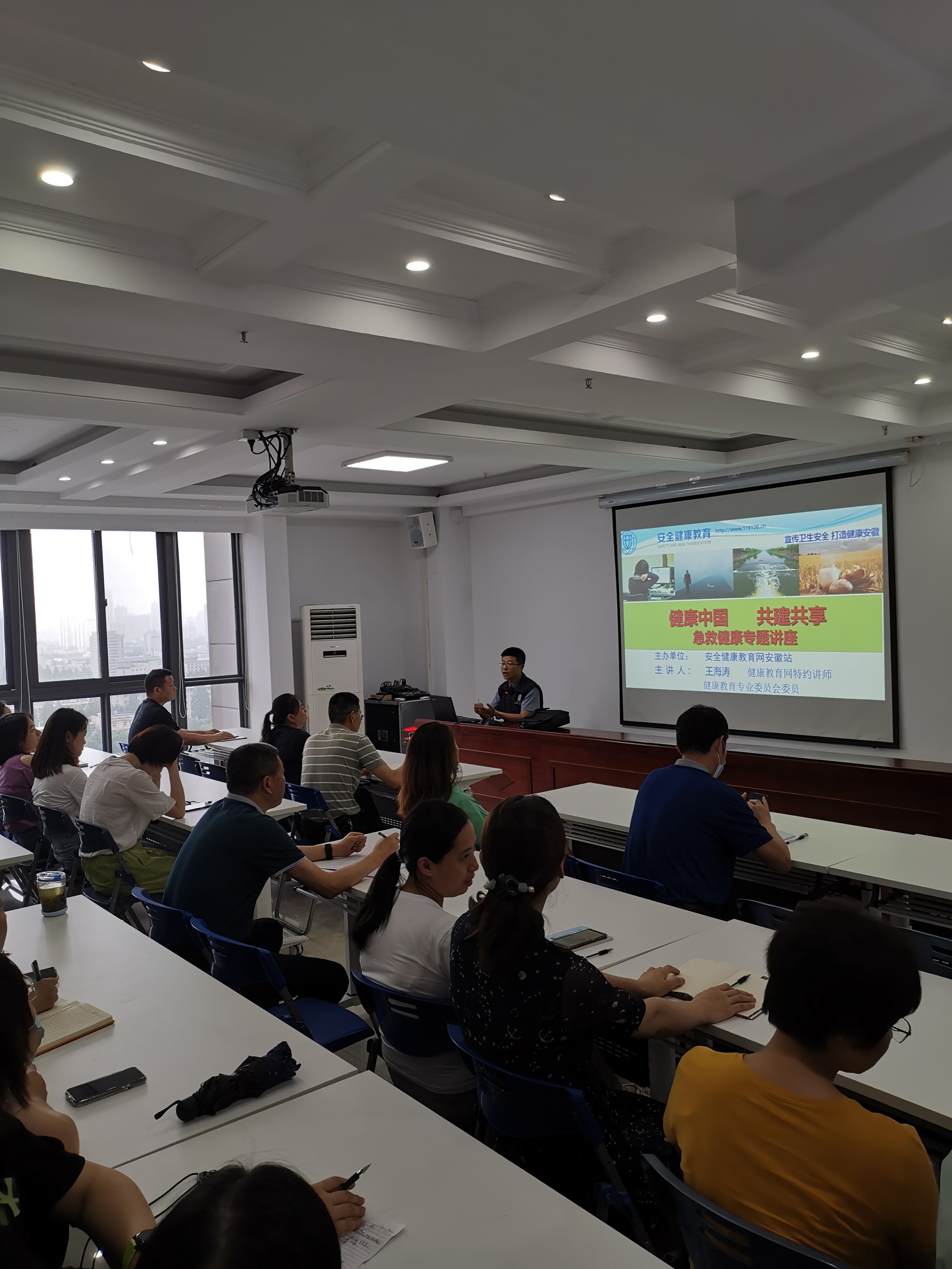 本次培訓(xùn)邀請(qǐng)安全健康教育網(wǎng)王海濤老師為大家進(jìn)行授課,老師結(jié)合豐富的健康教育知識(shí),重點(diǎn)從四個(gè)方面介紹了常見(jiàn)職業(yè)病與慢性病的預(yù)防和改善,公共衛(wèi)生常識(shí)及各種突發(fā)事故和突發(fā)疾病的自救互救,環(huán)境污染的危害及防護(hù),倡導(dǎo)文明健康、綠色環(huán)保的生活方式。全面講解了安全職業(yè)健康的知識(shí)和自救互救的能力,課程內(nèi)容深入淺出,得到在場(chǎng)參會(huì)人員的一致好評(píng)。