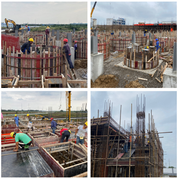 新宇藥業(yè)微生物藥物生產(chǎn)建設(shè)項(xiàng)目一期工程 罐體基礎(chǔ)設(shè)施;發(fā)酵車間一層頂腳手架搭設(shè)、模板安裝;動(dòng)力車間鋼筋綁扎