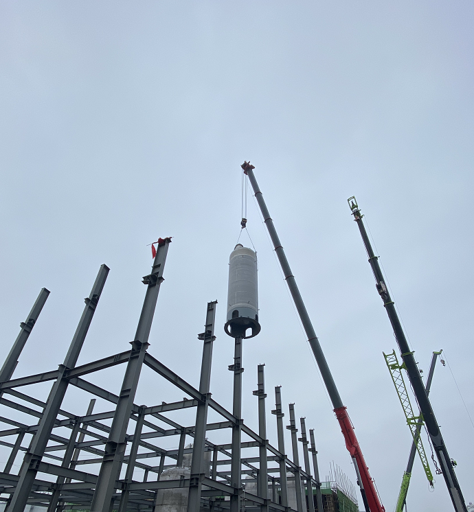十余噸的罐體在吊車的牽引下緩緩升起,小心翼翼,精準(zhǔn)前往指定基礎(chǔ),施工人員進(jìn)行固定矯正...30多臺(tái)工業(yè)用罐就這樣矗立起來(lái)。