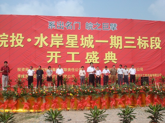 7月28日上午,驕陽似火,由公司滁州分公司承建的全椒皖投·水岸星城一期三標(biāo)段開工典禮隆重舉行。皖投置業(yè)主要領(lǐng)導(dǎo)、全椒縣政府負(fù)責(zé)人、公司總經(jīng)理王軍邦及分公司全體人員出席慶典,王總代表承建單位致辭。此工程的順利開工,標(biāo)志著公司與皖投的良好合作關(guān)系得到進一步延續(xù)和鞏固。