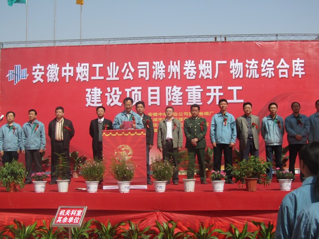 4月18日上午,陽光明媚。由公司滁州分公司承建的滁州卷煙廠物流綜合庫工程開工典禮隆重舉行。滁州卷煙廠主要領(lǐng)導及當?shù)刂鞴懿块T負責人蒞臨現(xiàn)場,公司總經(jīng)理王軍邦、黨委書記戴樹明應邀出席儀式,滁州分公司全體管理人員出席慶典,戴書記代表施工單位祝賀工程隆重開工。滁州卷煙廠物流工程的順利開工,標志著公司與安徽中煙的良好合作關(guān)系得到進一步延續(xù)和鞏固。