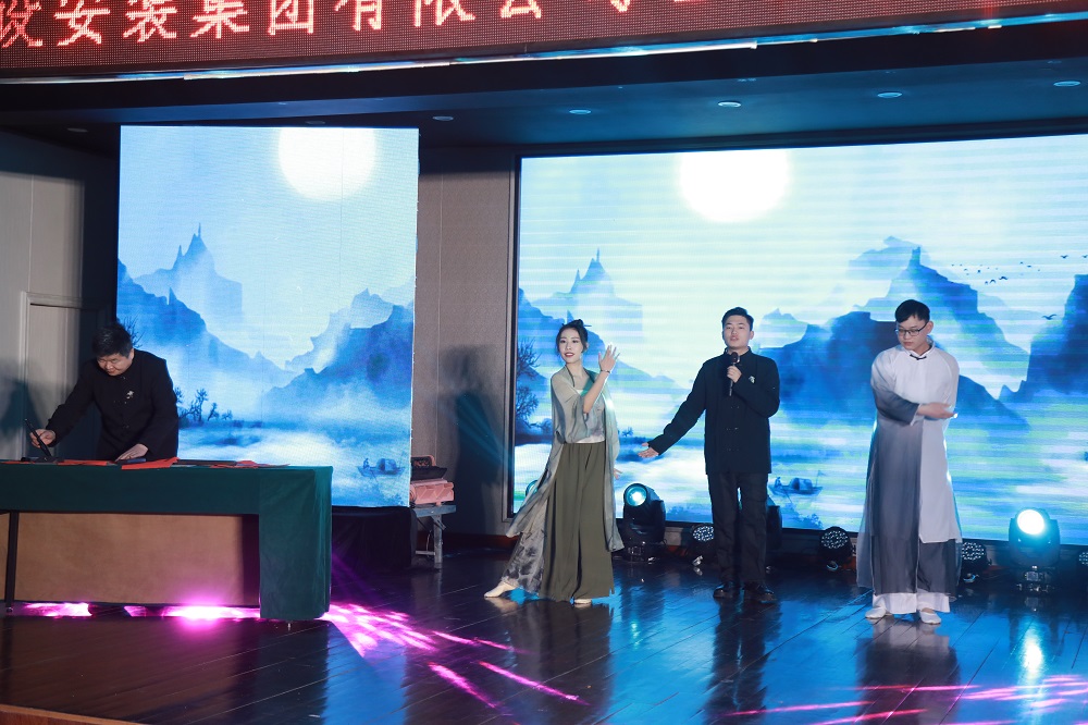 聯(lián)歡會一個個精彩的節(jié)目,博得大家的聲聲喝彩和陣陣掌聲,氣氛熱烈。在開場舞《龍騰盛世譜華章》中,聯(lián)歡會拉開序幕。新能源分公司《向光而行》展現(xiàn)了對未來發(fā)展的美好向往;安慶分公司《共創(chuàng)平安幸福年》以黃梅大鼓的形式講述安全工作的重要性;蚌埠分公司《水調(diào)歌頭》以獨唱、舞蹈及書法的形式送上祝福;公司機關(guān)的獨唱歌曲串燒《音樂學(xué)堂》帶領(lǐng)大家回憶童年耳熟能詳?shù)母枨?;新疆烏蘇分公司的小伙子們帶來的舞蹈《麥西來甫》呈現(xiàn)了維吾爾族的民族風情;滁州分公司的詩朗誦《建工逐夢人奉獻譜“新篇”》講述了建工安裝人的辛勤與奉獻;合肥分公司的《滁州賦》為觀眾帶來優(yōu)美的國風視覺享受;電梯分公司《舞動青春》散發(fā)著青春的活力與激情。最后,在共唱《相親相愛》中聯(lián)歡會落下帷幕。