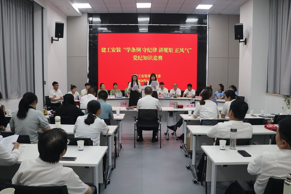 6月27日下午,建工安裝集團(tuán)舉辦“學(xué)條例 守紀(jì)律 講規(guī)矩 正風(fēng)氣”黨紀(jì)知識(shí)競(jìng)賽。公司黨委委員、紀(jì)委書(shū)記李楊,黨委委員、副總經(jīng)理董雙武,黨委委員、副總經(jīng)理樊剛出席活動(dòng),各黨支部書(shū)記、機(jī)關(guān)部門(mén)負(fù)責(zé)人以及參賽選手等40余人參加活動(dòng)。