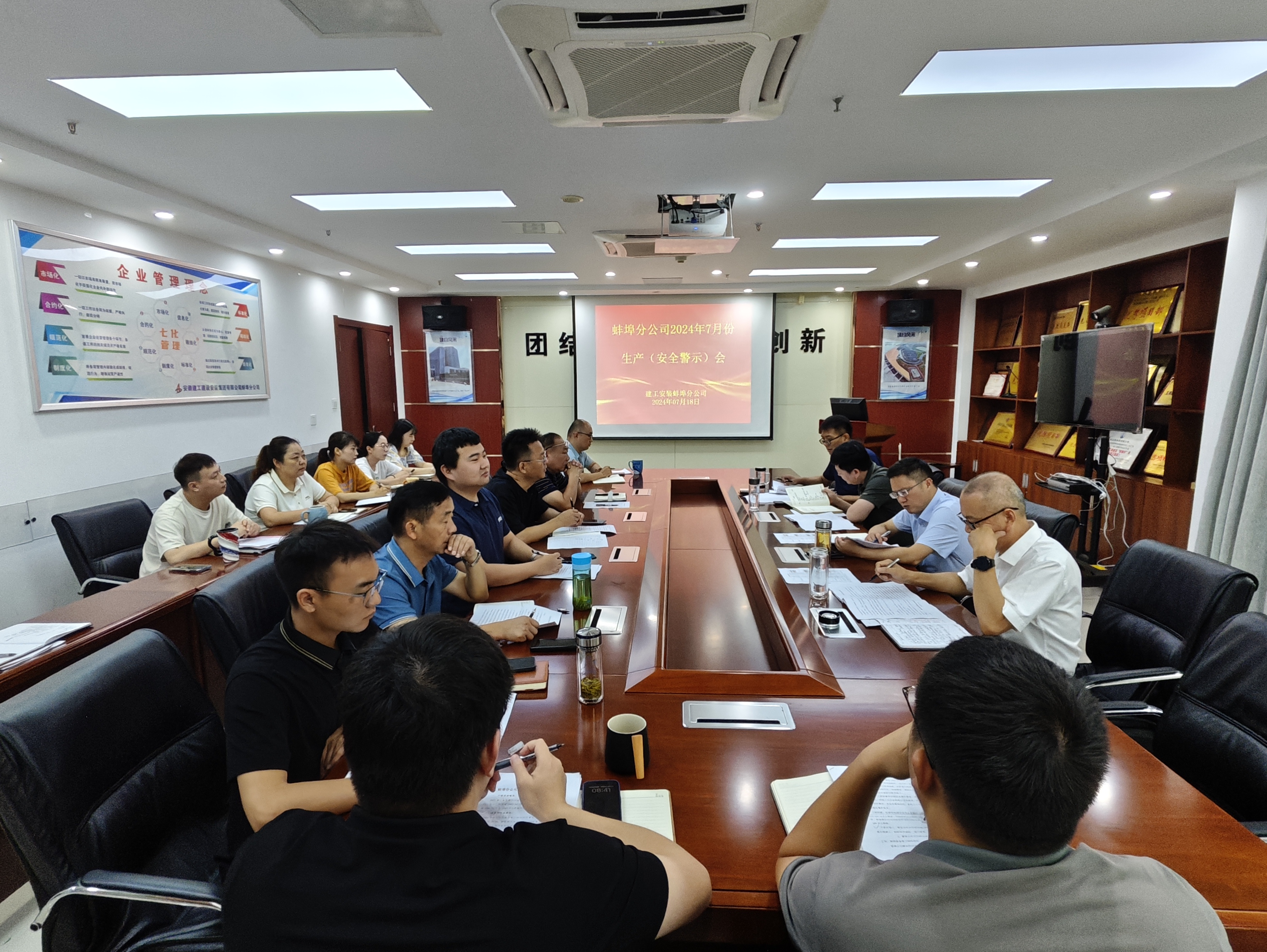 7月18日上午,蚌埠分公司組織召開7月份生產(chǎn)(安全警示)會,分公司領(lǐng)導(dǎo)班子、所屬各項(xiàng)目經(jīng)理、機(jī)關(guān)各部門負(fù)責(zé)人及工程管理部全體員工參加會議,會議由副經(jīng)理張斌主持。