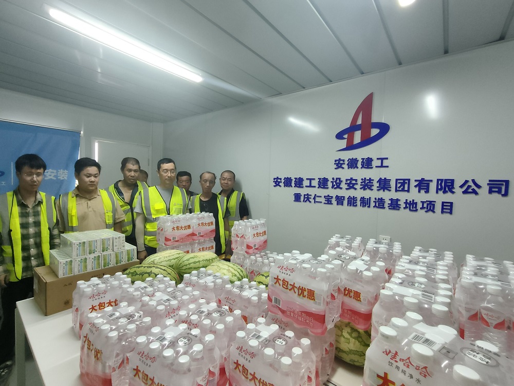 盛夏已至,驕陽似火,建工安裝合肥分公司省內(nèi)外各項目現(xiàn)場掀起“沖刺三季度”大干熱潮。在合理組織施工的同時,分公司多措并舉,通過聯(lián)合屬地項目部開展送清涼等慰問活動,為建設者安全健康提供保障。