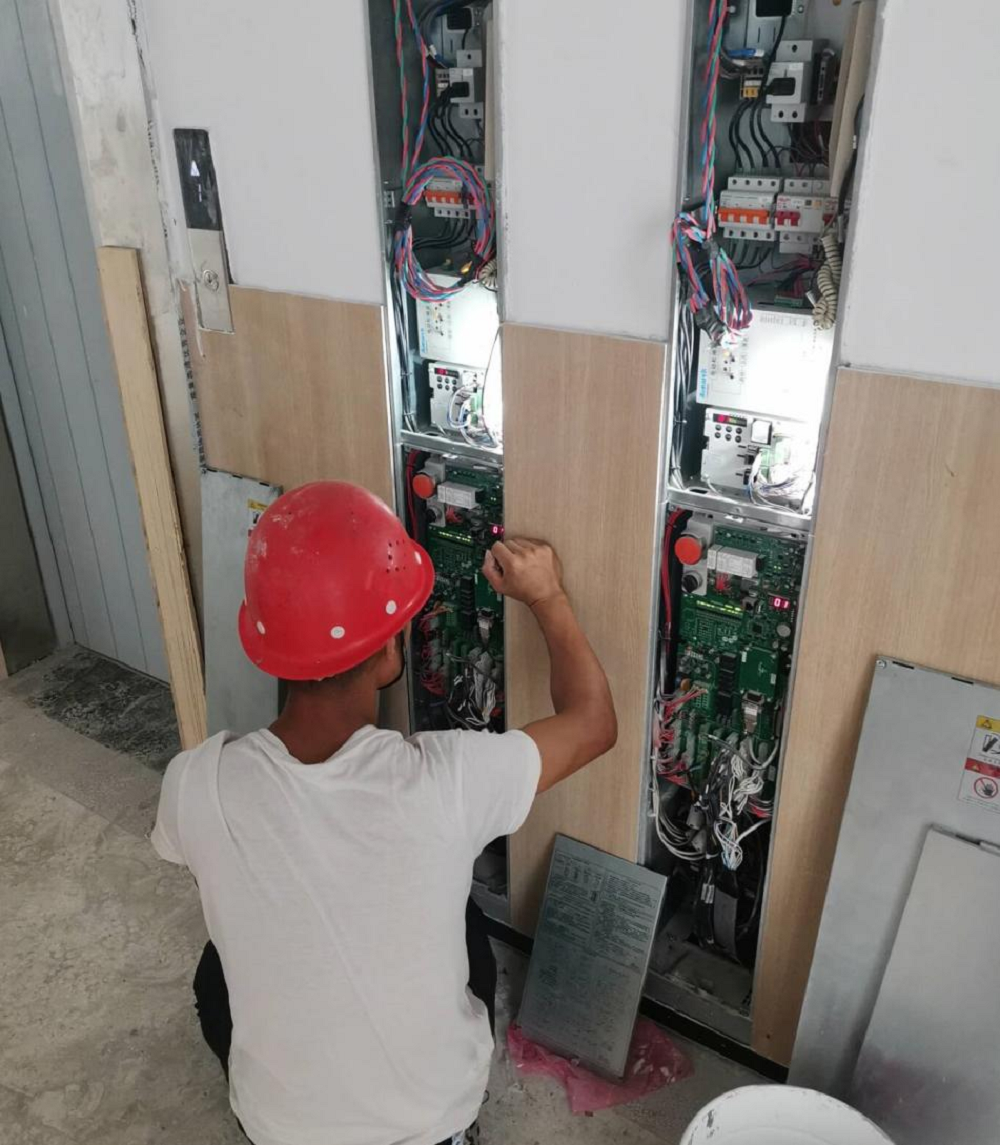 蚌埠自貿(mào)區(qū)山香學(xué)校項目施工人員正在進(jìn)行無機(jī)房電梯檢驗