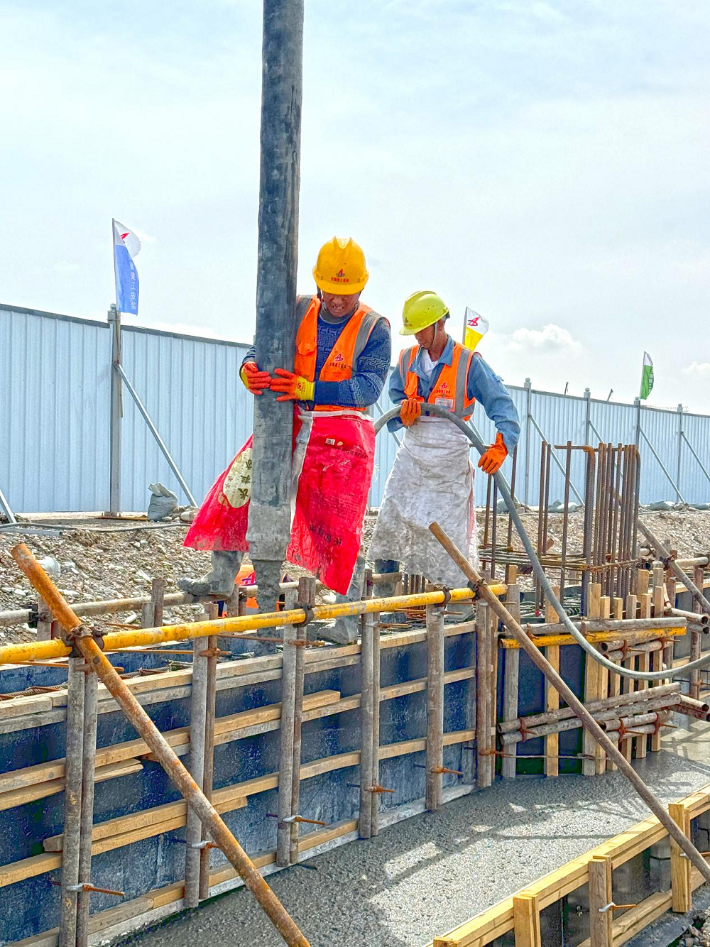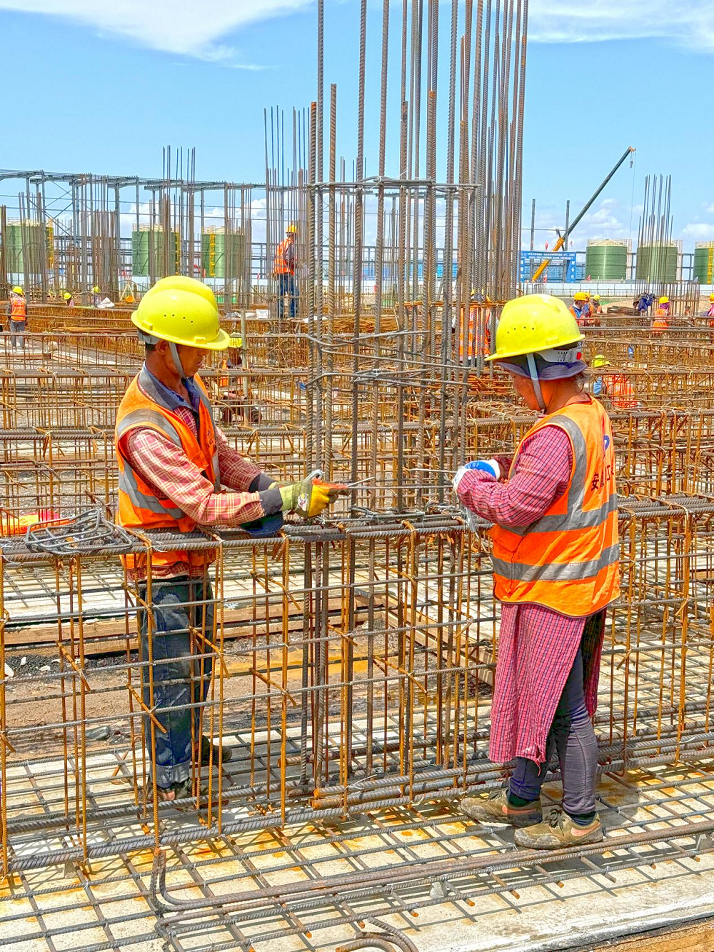 該項目施工現(xiàn)場人頭攢動,機械轟鳴,駐場技術人員頭頂烈日、靠前指揮,施工工人往來穿梭,或支設模板,或綁扎鋼筋,與夏競速,“激戰(zhàn)”正酣。項目工期緊任務重,為搶進度、嚴安全、保工期、抓質量,項目部嚴格制定施工進度計劃,統(tǒng)籌安排施工人、材、機,合理高效進場施工作業(yè),目前項目正在進行變電所及廠房的基礎工程。