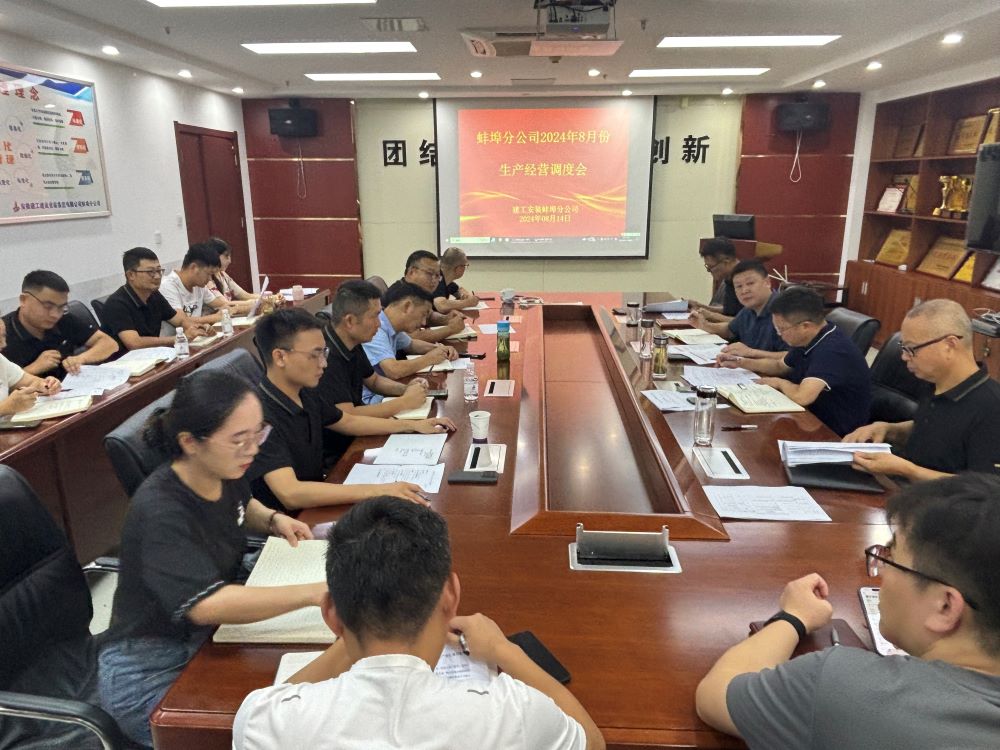 8月14日上午,蚌埠分公司組織召開(kāi)8月份生產(chǎn)經(jīng)營(yíng)調(diào)度會(huì),分公司領(lǐng)導(dǎo)班子成員、所屬各項(xiàng)目部、機(jī)關(guān)各部門(mén)負(fù)責(zé)人及工程管理部全體員工參加會(huì)議,會(huì)議由分公司副經(jīng)理張斌主持。