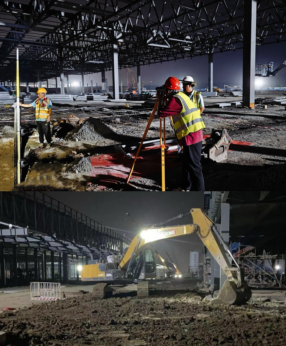 預(yù)埋排水管標(biāo)高測(cè)量夜間施工