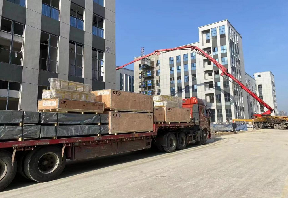 長淮衛(wèi)鎮(zhèn)派出所項目電梯到貨,現(xiàn)場施工人員正在準備卸貨