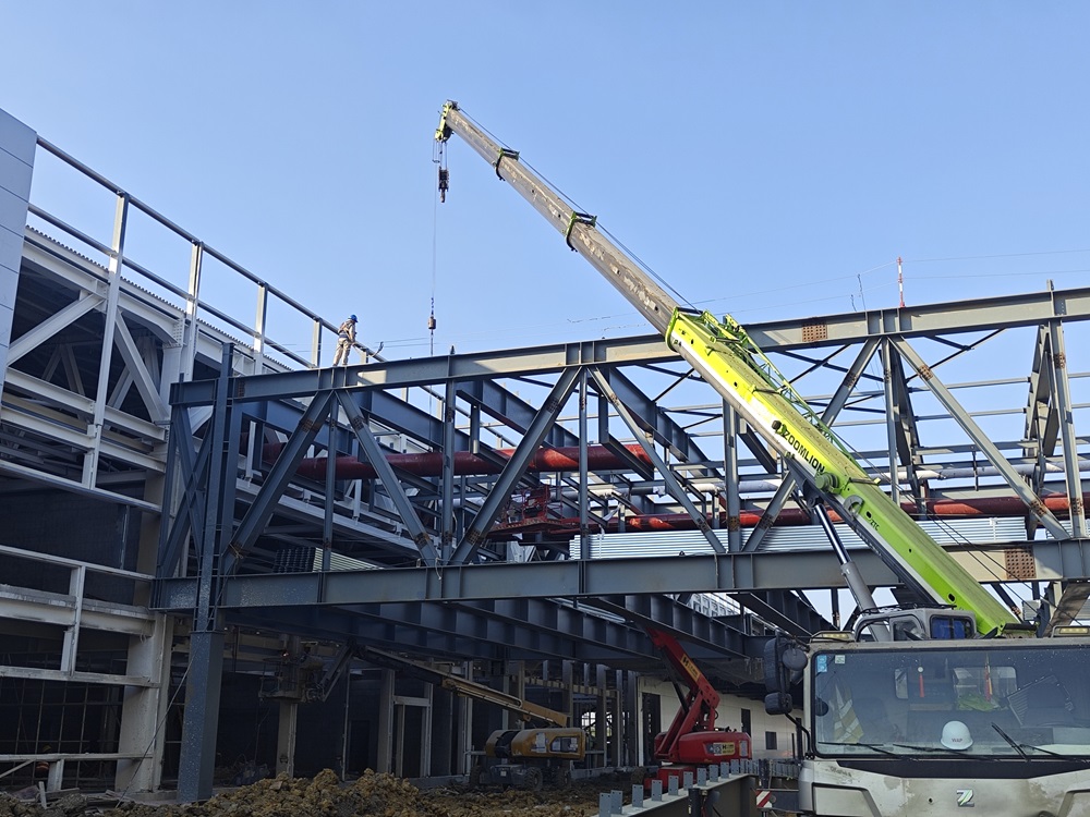 雖已立冬,天氣轉(zhuǎn)涼,但合肥新橋智能制造產(chǎn)業(yè)園一階段一標(biāo)項(xiàng)目部戰(zhàn)鼓依然在響,施工現(xiàn)場(chǎng)依舊是一片奮戰(zhàn)猶酣的火熱場(chǎng)面。吊車揮舞著“長(zhǎng)臂”、升降車起起落落、施工車來(lái)回穿梭、工人們忙忙碌碌,敲擊聲聲聲入耳……一切都在為確保競(jìng)賽節(jié)點(diǎn)努力拼搏著。