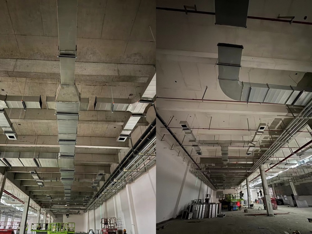 目前,焊裝車間循環(huán)水系統(tǒng)、消火栓系統(tǒng)、給排水系統(tǒng)、壓縮空氣已完成全部管道安裝任務(wù),進(jìn)入吹掃試驗(yàn)階段。電氣系統(tǒng)進(jìn)入電纜放線和柜體箱體安裝階段,暖通系統(tǒng)進(jìn)入屋頂閣樓安裝階段。