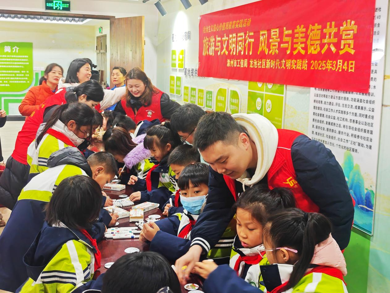 在活動現(xiàn)場,團(tuán)員青年們化身“志愿導(dǎo)師”,帶領(lǐng)15名小學(xué)生共同制作“雷鋒紀(jì)念徽章”,小朋友們充分發(fā)揮想象力,努力描繪出自己心中的雷鋒,興高采烈地開始了DIY雷鋒主題徽章的制作。從繪制、涂色到壓版,青年志愿者們一邊手把手指導(dǎo)孩子們完成徽章創(chuàng)作,一邊講述雷鋒同志助人為樂、無私奉獻(xiàn)的感人故事。一枚枚印有“向雷鋒同志學(xué)習(xí)”“紀(jì)念雷鋒”等字樣的徽章,在孩子們的巧手中誕生,成為傳承雷鋒精神的生動載體,也在小朋友們心間種下了“雷鋒精神”的種子?!拔乙窭卒h叔叔一樣,多幫助同學(xué)!”一名小朋友佩戴著親手制作的徽章,堅(jiān)定地說道。