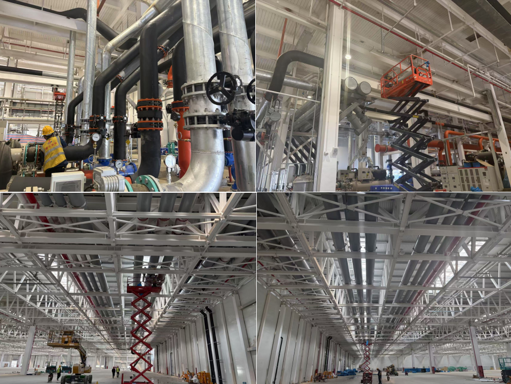 自一季度以來(lái),項(xiàng)目部以“2025開(kāi)局即決戰(zhàn)”的昂揚(yáng)斗志,迅速掀起“大干快上”施工熱潮。對(duì)各車(chē)間、各系統(tǒng)剩余工程量展開(kāi)全面梳理統(tǒng)計(jì),同時(shí)針對(duì)剩余工程量堅(jiān)持每日召開(kāi)專題會(huì),以倒排計(jì)劃為“發(fā)令槍”,對(duì)照時(shí)間節(jié)點(diǎn)要求各班組加班加點(diǎn)、不折不扣完成。截至發(fā)稿,車(chē)間一大面積施工基本完成,形象進(jìn)度完成約96%;車(chē)間二形象進(jìn)度完成約90%;車(chē)間四形象進(jìn)度完成約92%;站房一各設(shè)備管道基本安裝完成,正在調(diào)試中,形象進(jìn)度完成約90%。目前,各車(chē)間工藝生產(chǎn)均已進(jìn)場(chǎng),燃?xì)忮仩t點(diǎn)火成功、空壓站完成試運(yùn)行、工藝24h冷凍水、恒溫恒濕空調(diào)均已投入使用;各車(chē)間工藝區(qū)送電已到位、供水完成。